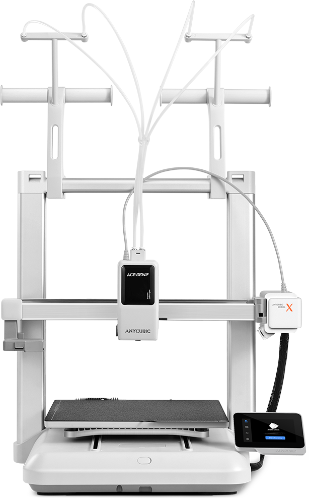Opremljen s tehnologijo ACE GEN 2 omogoča Kobra X 4-barvni tisk neposredno v Toolheadu in razširitev do 19 barv*. Hkrati sistem podpira Multi-Material tisk, kot so PLA, TPU ali PVA, kar omogoča učinkovito izvedbo tudi kompleksnih projektov.