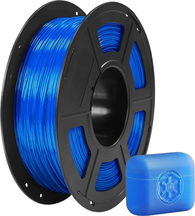 TPU filament, ki je prilagodljiv, trpežen in enostaven za tiskanje v prozorno modri različici