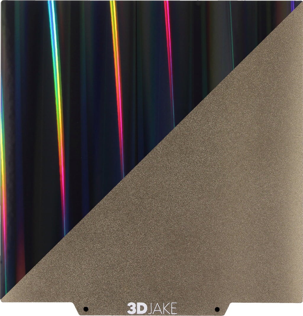 PET/PEI delovna plošča Aurora znamke 3DJAKE je fleksibilna, dvostransko premazana delovna plošča z magnetno podlago. Ena stran plošče je izdelana iz PET materiala z Aurora vzorcem, ki daje natisnjenim predmetom edinstvene vizualne učinke. Druga stran pa ima praškasto prevlečen PEI premaz za odličen oprijem in enostavno odstranjevanje modelov.