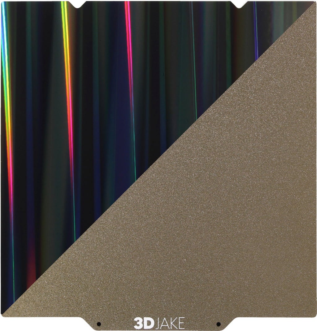 PET/PEI delovna plošča Aurora znamke 3DJAKE je fleksibilna, dvostransko premazana delovna plošča z magnetno podlago. Ena stran plošče je izdelana iz PET materiala z Aurora vzorcem, ki daje natisnjenim predmetom edinstvene vizualne učinke. Druga stran pa ima praškasto prevlečen PEI premaz za odličen oprijem in enostavno odstranjevanje modelov.