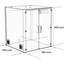 Ohišje navdušuje s posebno lahko in trpežno konstrukcijo z elegantnimi aluminijastimi profili. Sodoben dizajn dopolnjujejo velika, prozorna sprednja vrata, ki omogočajo varno in enostavno rokovanje s 3D tiskanjem, tako da je celoten proizvodni proces optimalno viden.
