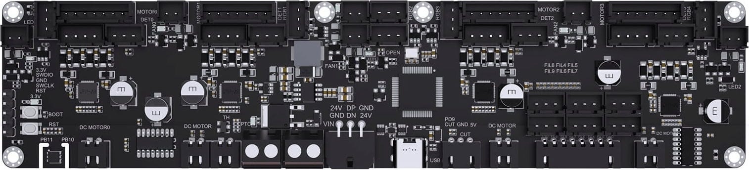 BTT KMS PCB Kit je zmogljiv, modularni nadzorni komplet za večbarvne tiskarske sisteme. Komplet je bil razvit v sodelovanju z Open-Source projektoma KMS in Happy Hare ter omogoča brezhibno Plug-and-Play integracijo v obstoječe večmaterialne sisteme, vključno s sistemi Happy Hare V3 in Type-B.