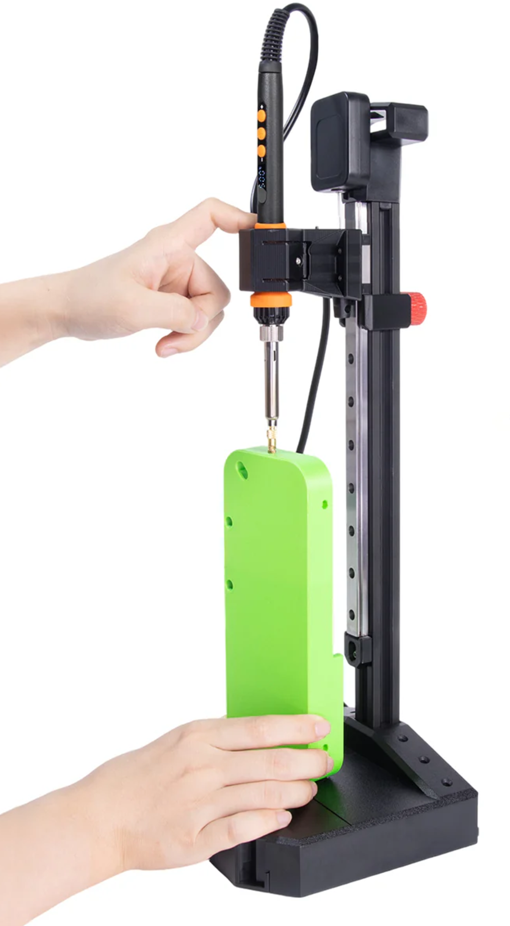 Mintion Nutopress Pro je profesionalna stiskalnica za talilni navoj za natančno vgradnjo navojnih vložkov v 3D-natisnjene komponente. Zasnovana je za uporabo v delavnicah, proizvodnih obratih in tiskarnah ter združuje visoko ponovljivost z učinkovitim delovnim potekom - idealna za mehansko obremenjene tiskane dele iz PLA, PETG, ABS in drugih materialov.