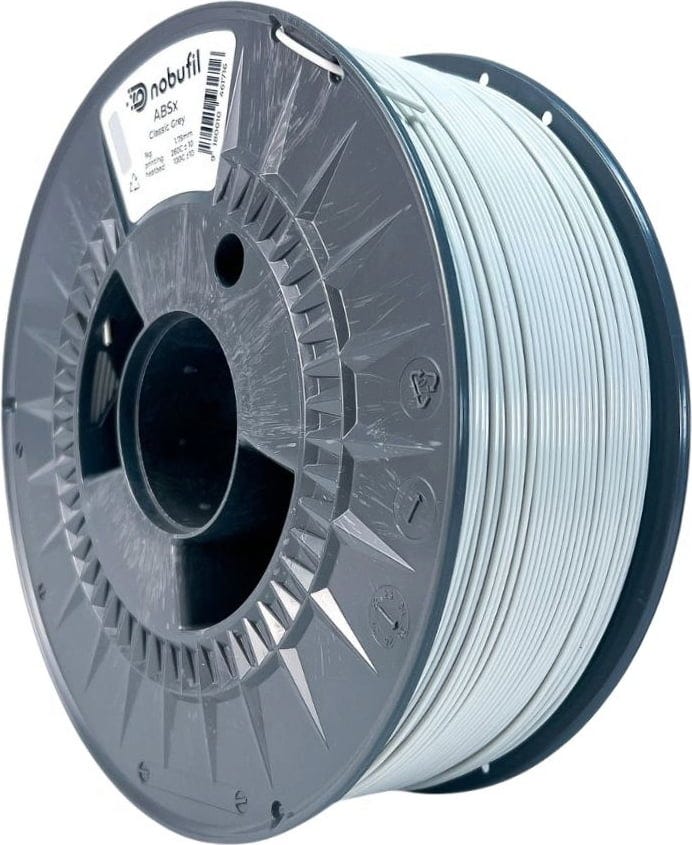 ABSx filament znamke Nobufil je ABS filament, narejen iz reciklirane plastike, ki se v industrijski predelavi kopiči kot proizvodni odpadek. V primerjavi z običajnimi ABS filamenti se ABSx manj deformira in manj smrdi.