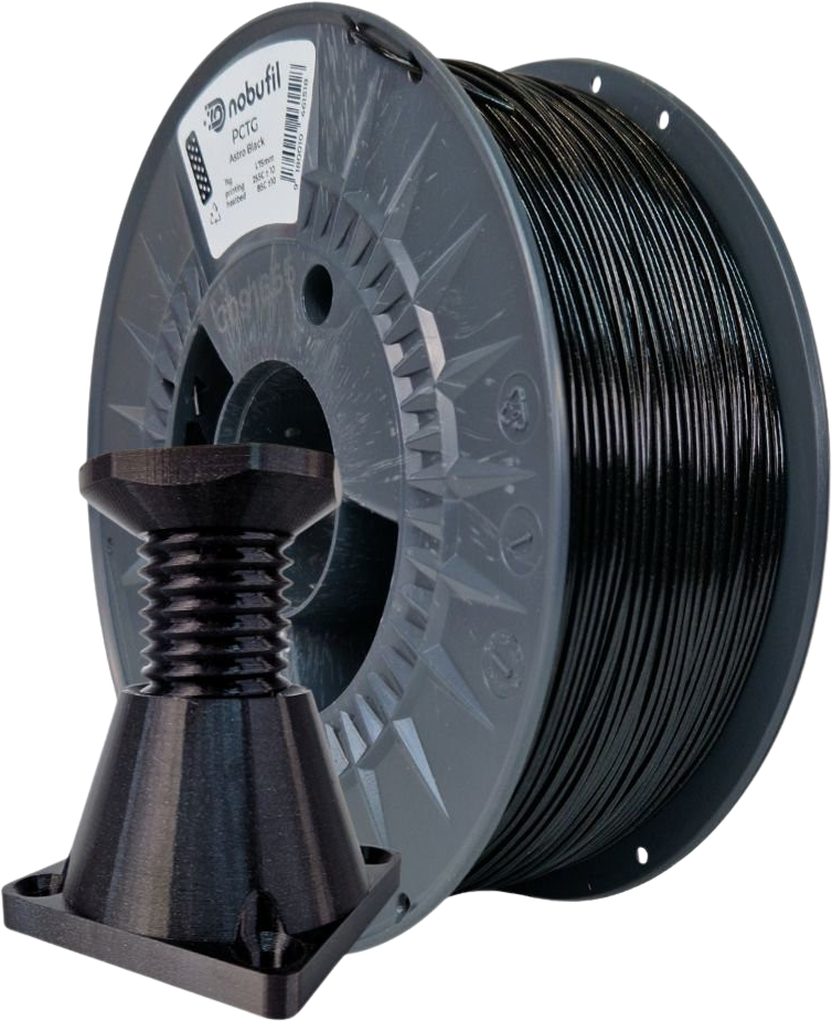 PCTG filament znamke Nobufil je izdelan iz reciklirane plastike, ki nastane kot proizvodni odpadek med industrijsko predelavo. V primerjavi s PETG filamenti ima ta polimer večjo odpornost proti udarcem, zaradi česar je primeren za izdelavo mehansko obremenjenih komponent.