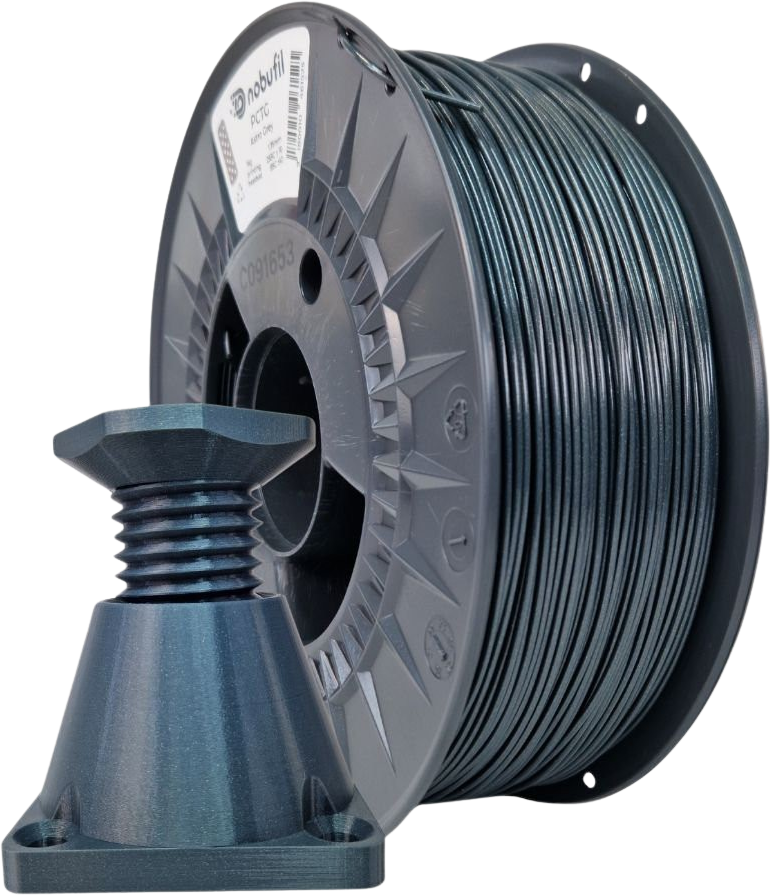 PCTG filament znamke Nobufil je izdelan iz reciklirane plastike, ki nastane kot proizvodni odpadek med industrijsko predelavo. V primerjavi s PETG filamenti ima ta polimer večjo odpornost proti udarcem, zaradi česar je primeren za izdelavo mehansko obremenjenih komponent.