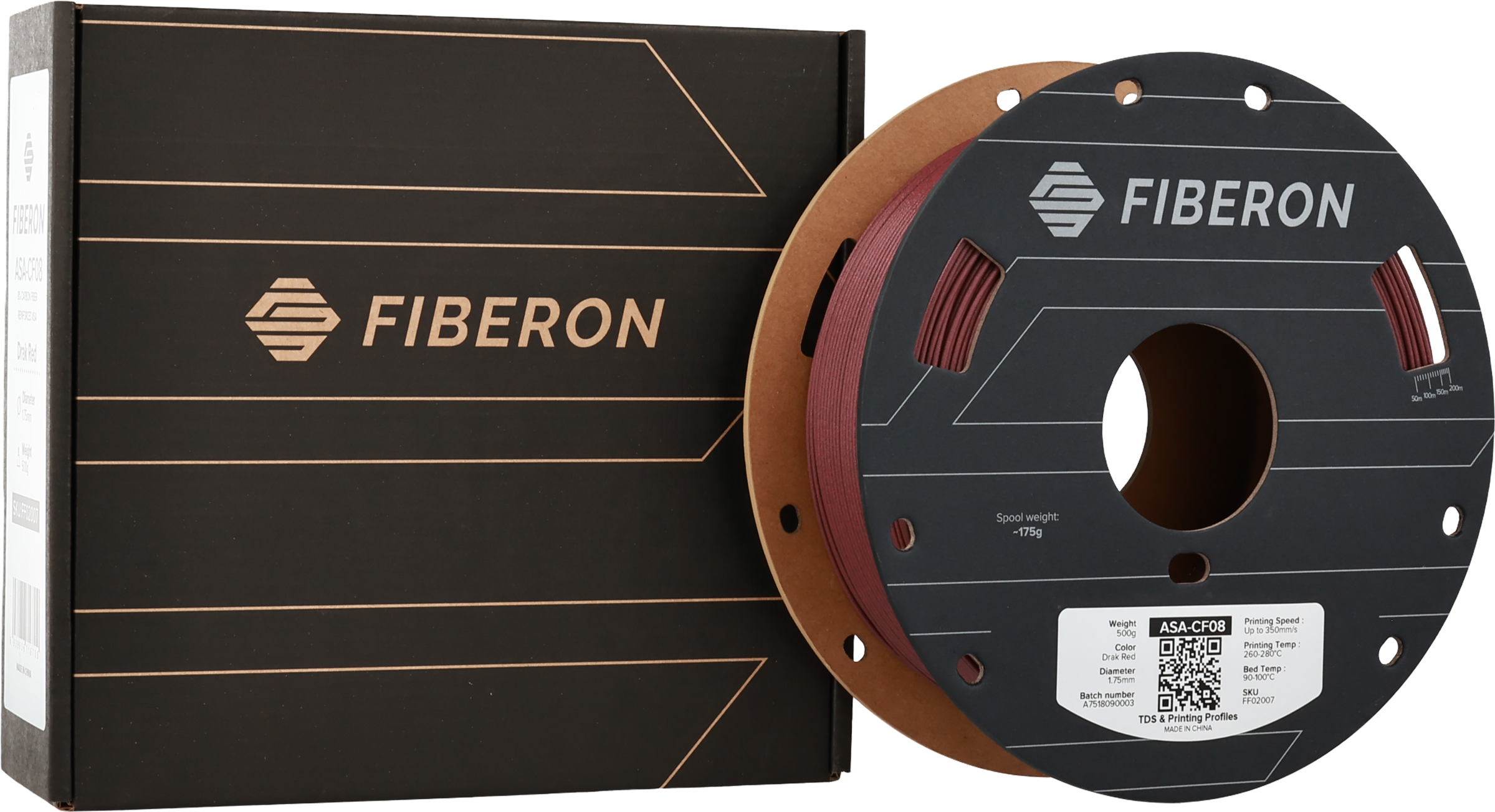 Fiberon™ ASA-CF08 je visokozmogljiv filament na osnovi akrilonitril stiren akrilata (ASA), ojačanega z 8 % karbonskih vlaken. Rezultat je material z izjemno togostjo, visoko dimenzijsko stabilnostjo in matirano, lahko površino, ki ga odlikujejo tako mehanske lastnosti kot estetska kakovost.