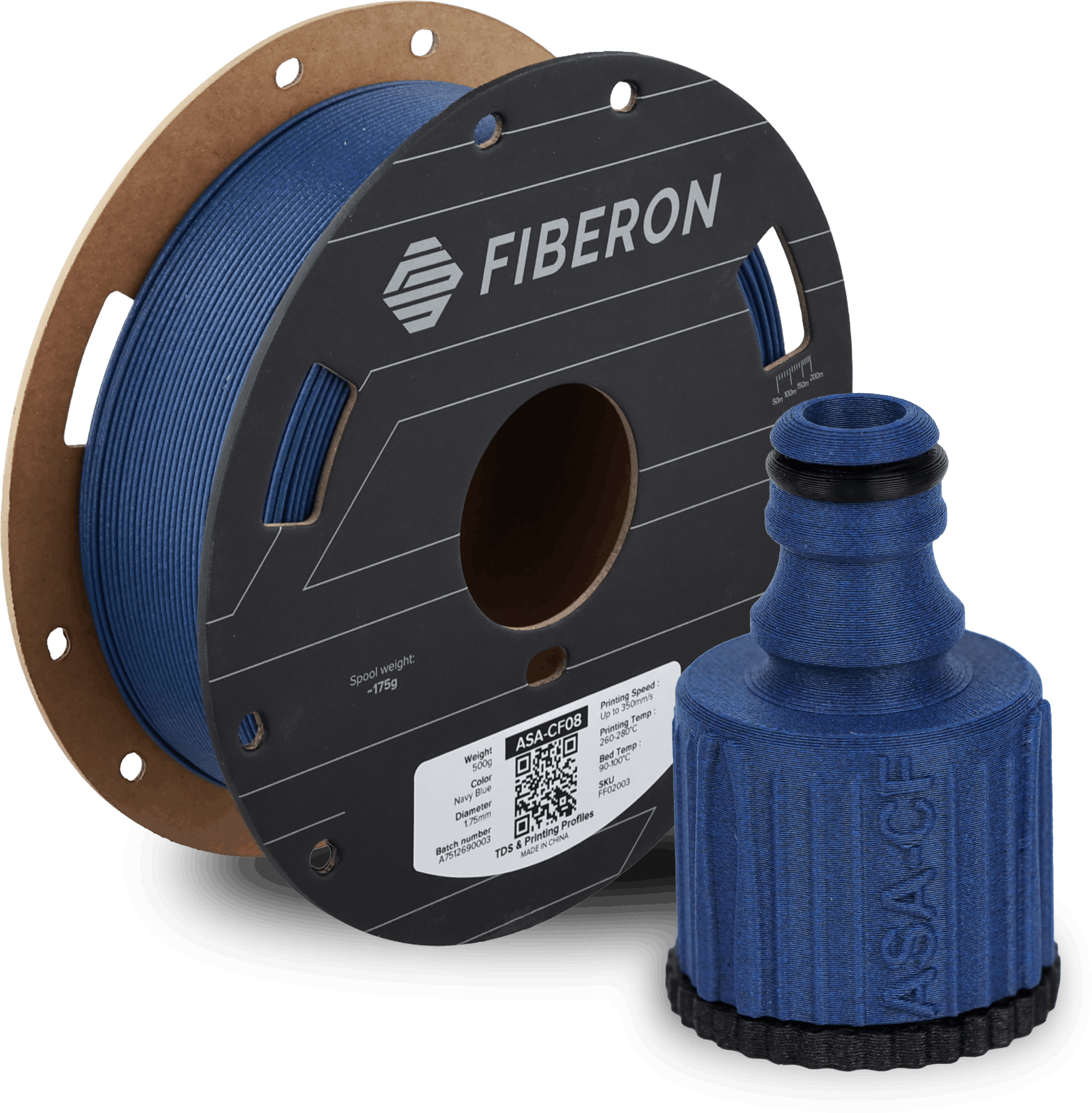 Fiberon™ ASA-CF08 je visokozmogljiv filament na osnovi akrilonitril stiren akrilata (ASA), ojačanega z 8 % karbonskih vlaken. Rezultat je material z izjemno togostjo, visoko dimenzijsko stabilnostjo in matirano, lahko površino, ki ga odlikujejo tako mehanske lastnosti kot estetska kakovost.