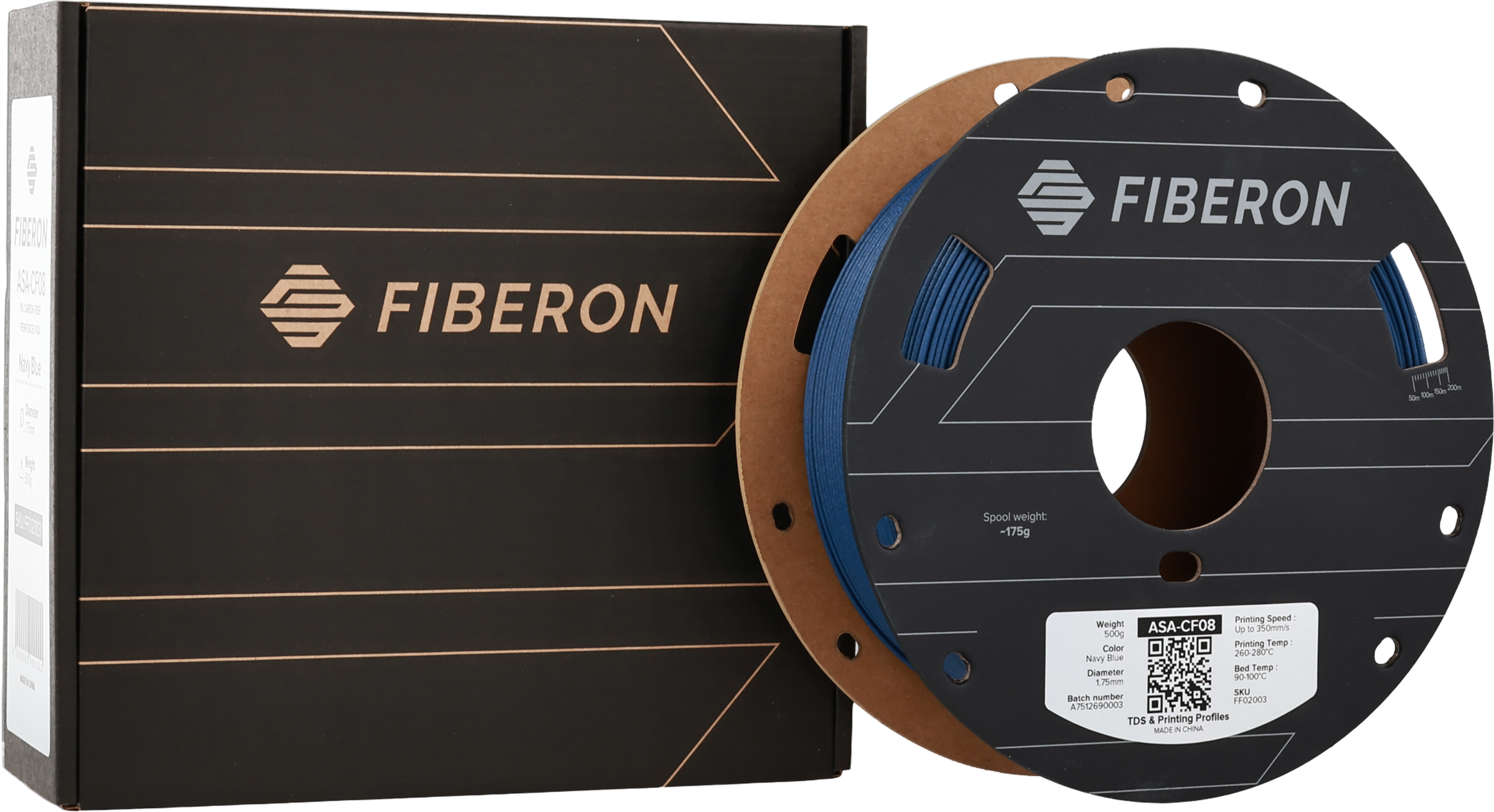 Fiberon™ ASA-CF08 je visokozmogljiv filament na osnovi akrilonitril stiren akrilata (ASA), ojačanega z 8 % karbonskih vlaken. Rezultat je material z izjemno togostjo, visoko dimenzijsko stabilnostjo in matirano, lahko površino, ki ga odlikujejo tako mehanske lastnosti kot estetska kakovost.