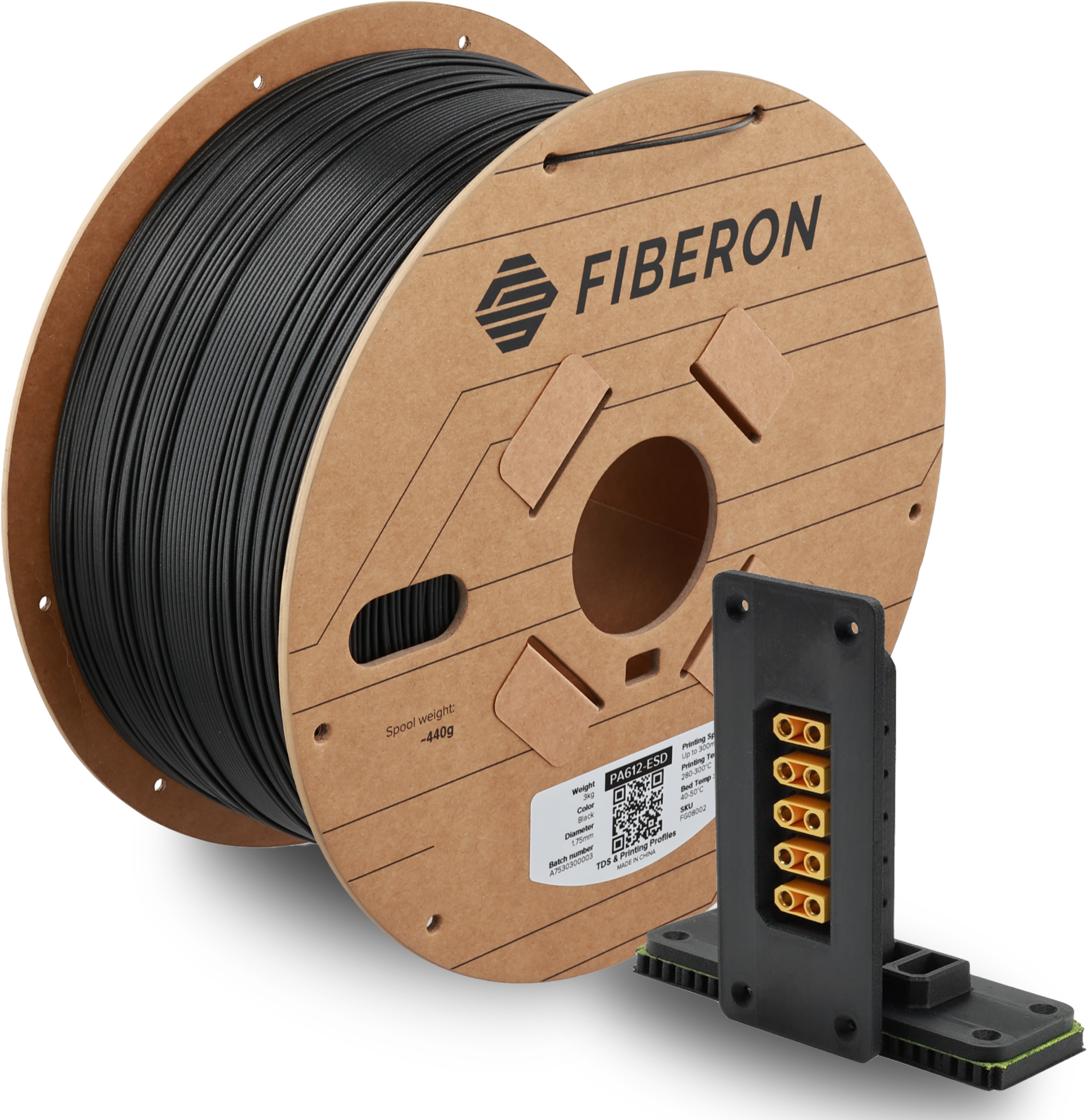 Polymaker Fiberon™ PA612-ESD je tehnično optimiziran najlonski filament na osnovi PA612, ojačan z karbonskimi vlakni in ogljikovimi nanocevkami. Ponuja visoko mehansko trdnost, dimenzijsko stabilnost in zanesljivo elektrostatično razelektritev (ESD).