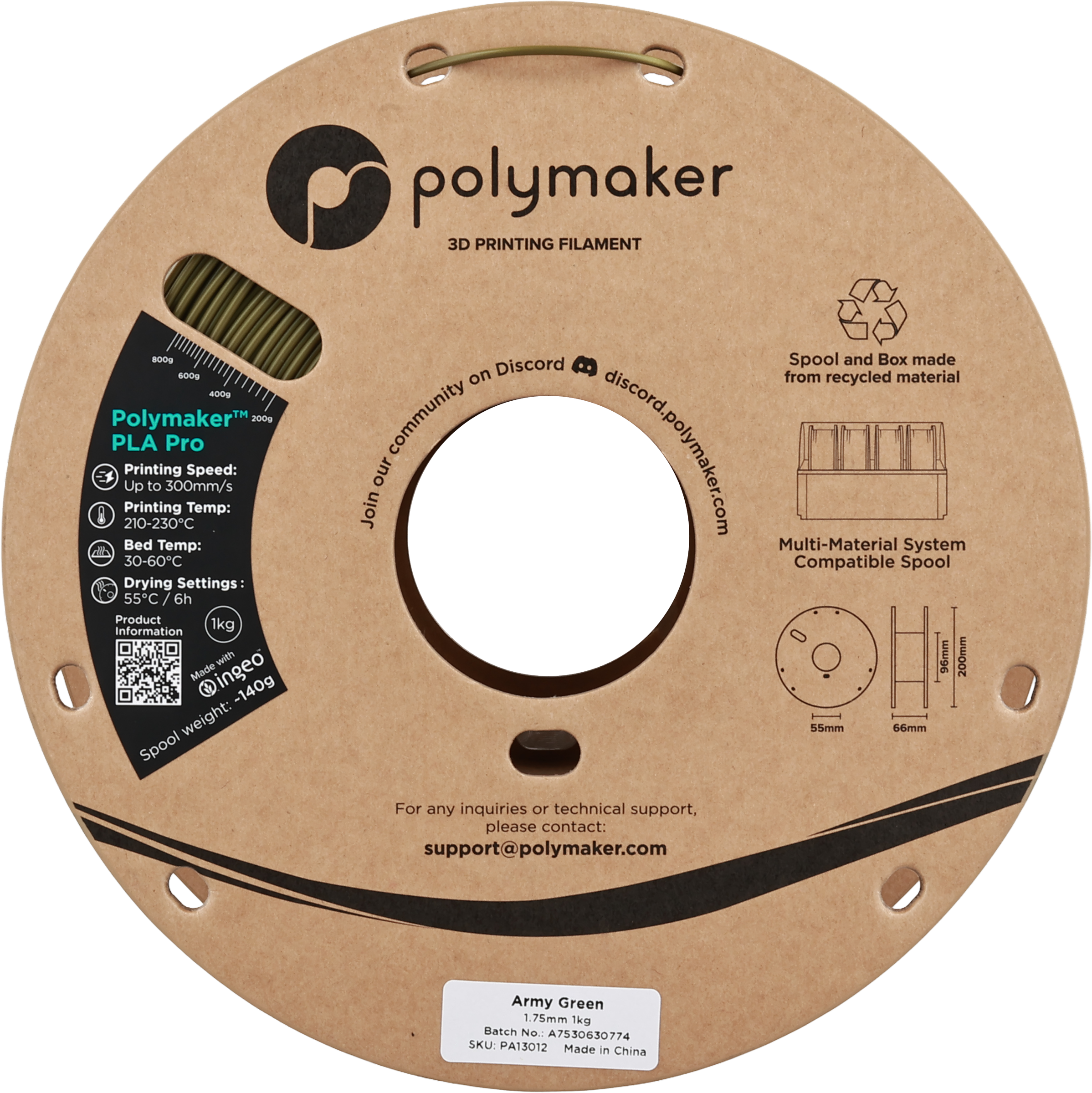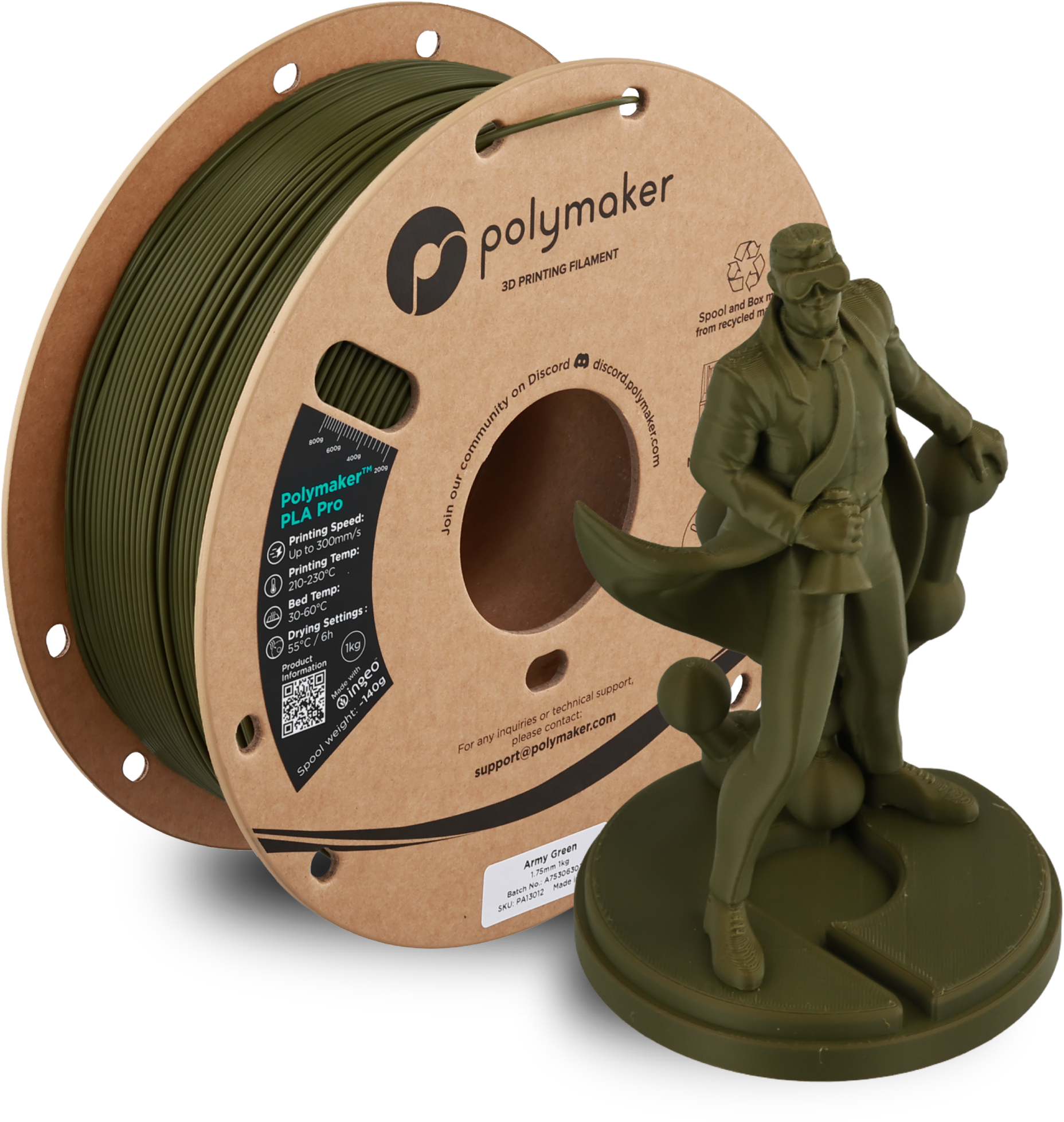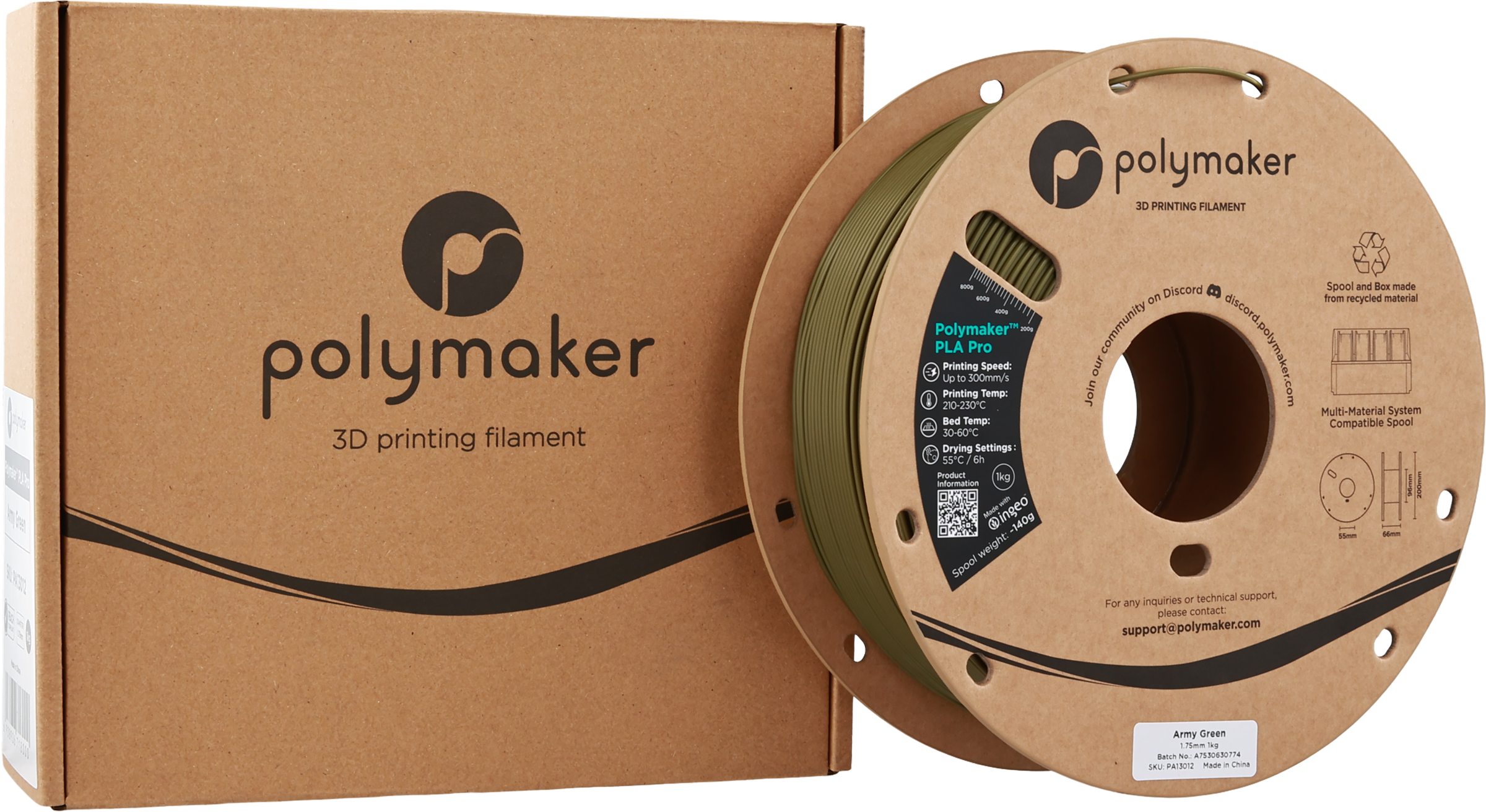 Izkušnenj v jeziku slovenščina za izdelek Polymaker PLA Pro Army Green