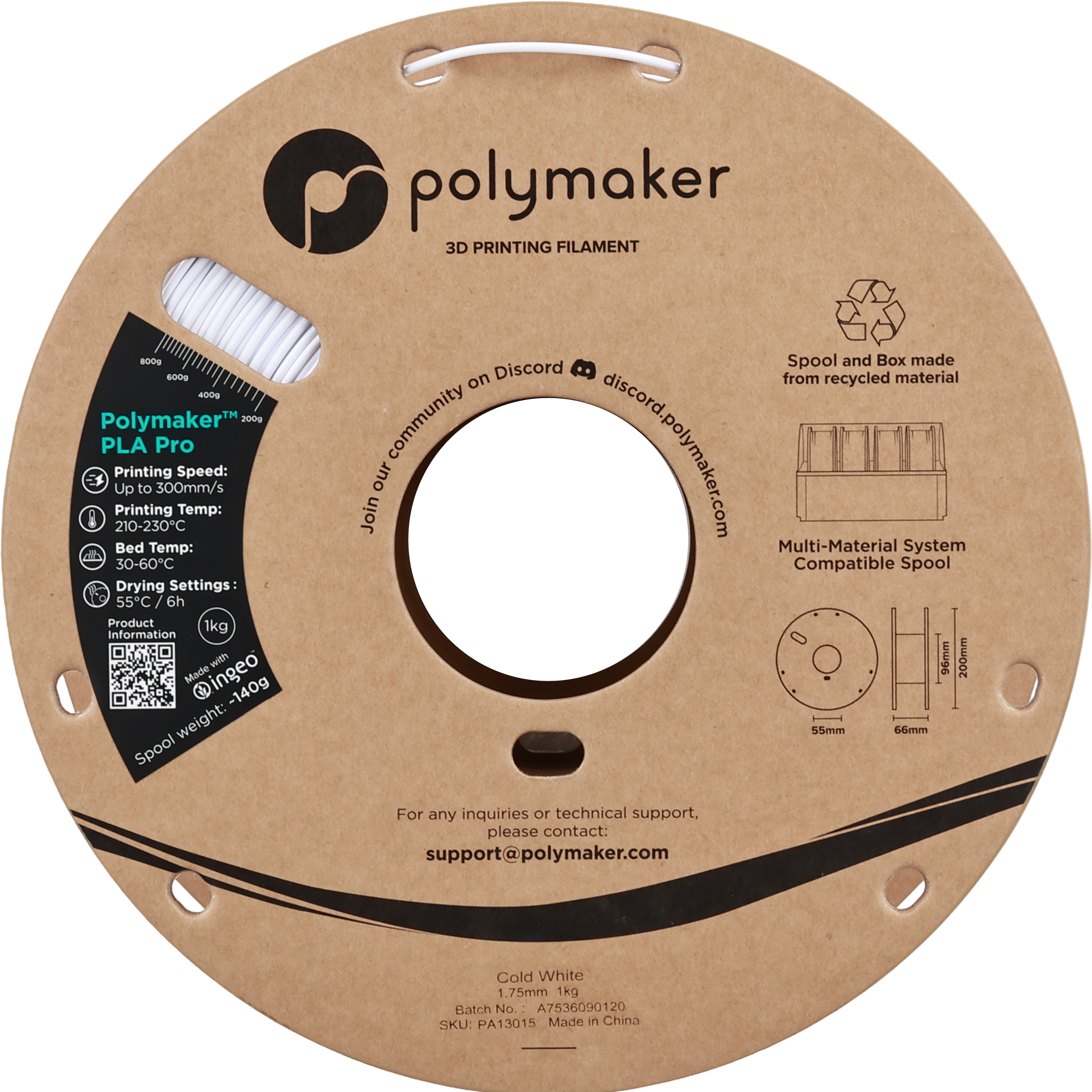 Izkušnenj v jeziku slovenščina za izdelek Polymaker PLA Pro Cold White