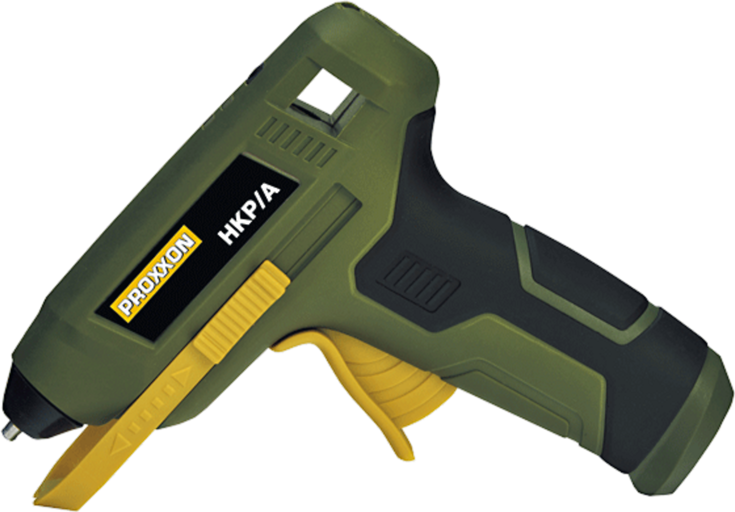 Akumulatorska pištolo za vroče lepljenje HKP/A znamke Proxxon je idealno orodje za natančno, hitro in čisto lepljenje najrazličnejših materialov – od kovine, lesa, plastike in stekla do keramike, kartona, usnja, pene in tekstila. Zahvaljujoč grelnemu elementu, ki ga upravlja PTC, pištola v kratkem času doseže stalno delovno temperaturo 200 °C, zato lahko takoj začnete z delom.