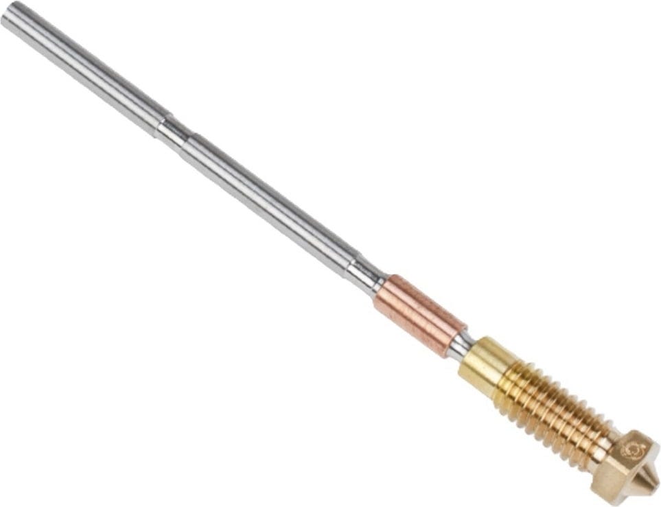 Prusa Nozzle Brass CHT je bila posebej razvita za najnovejšo generacijo 3D-tiskalnikov Prusa - in ima pametno nadgradnjo: neprekinjeno kovinsko vodilo za filament. To pomeni, da v Nextruderju ni več PTFE cevi! Zaradi tega je vaš tiskalnik ne le zanesljivejši, ampak je tudi menjava šob enostavna.