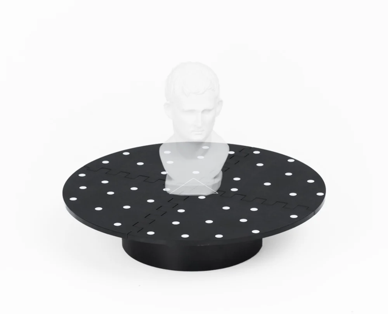 Ta kompaktna, prenosna vrtljiva plošča je idealna za skeniranje srednje velikih in majhnih predmetov. V kombinaciji z vrtljivo ploščo s predhodno pripravljenimi označevalnimi točkami je skeniranje predmetov brez značilnosti lažje!