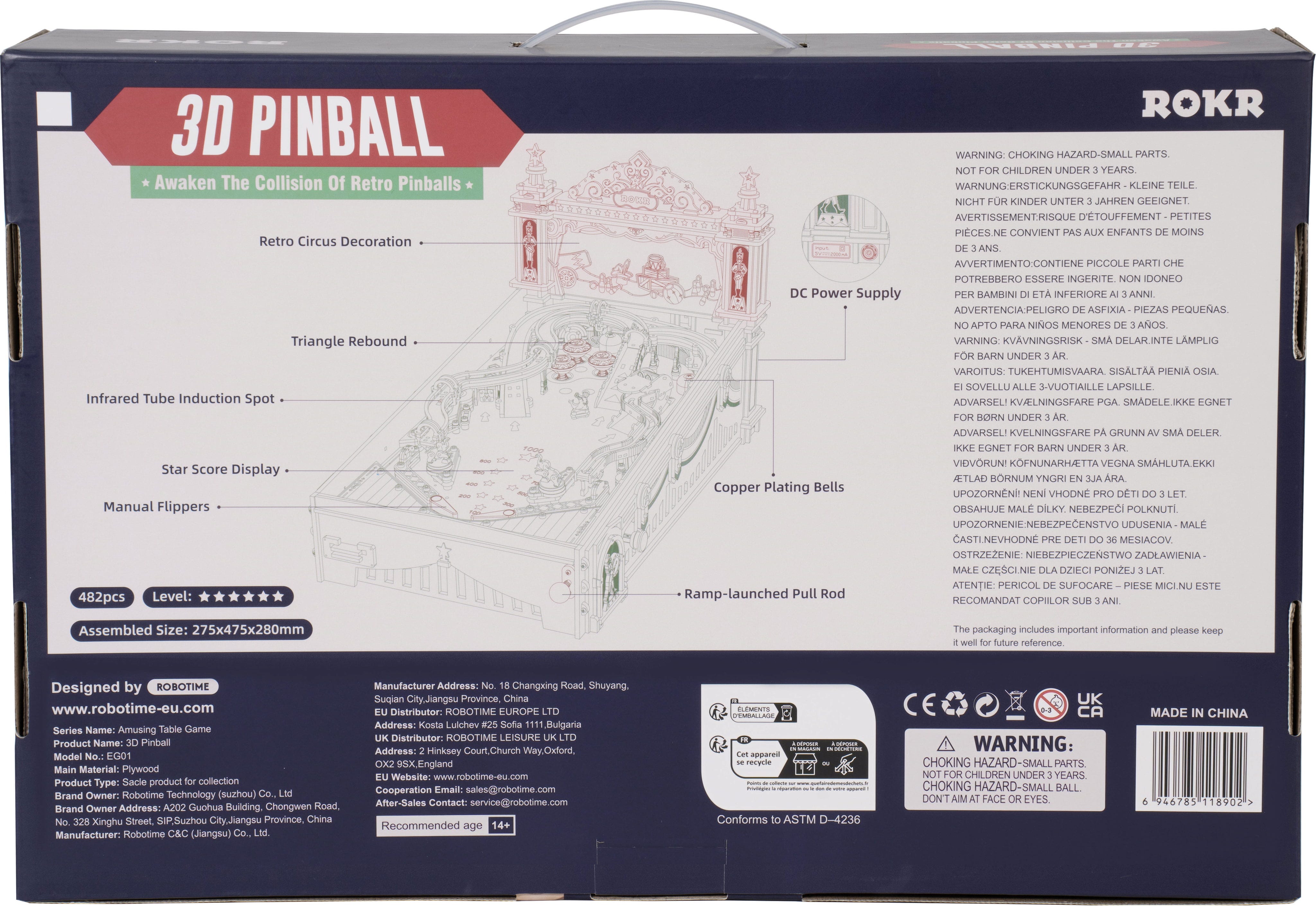 ROKR 3D Pinball Machine obuja vznemirjenje klasičnih arkadnih fliperjev – kot popolnoma funkcionalna 3D lesena sestavljanka, ki jo sestavite sami od začetka do konca.