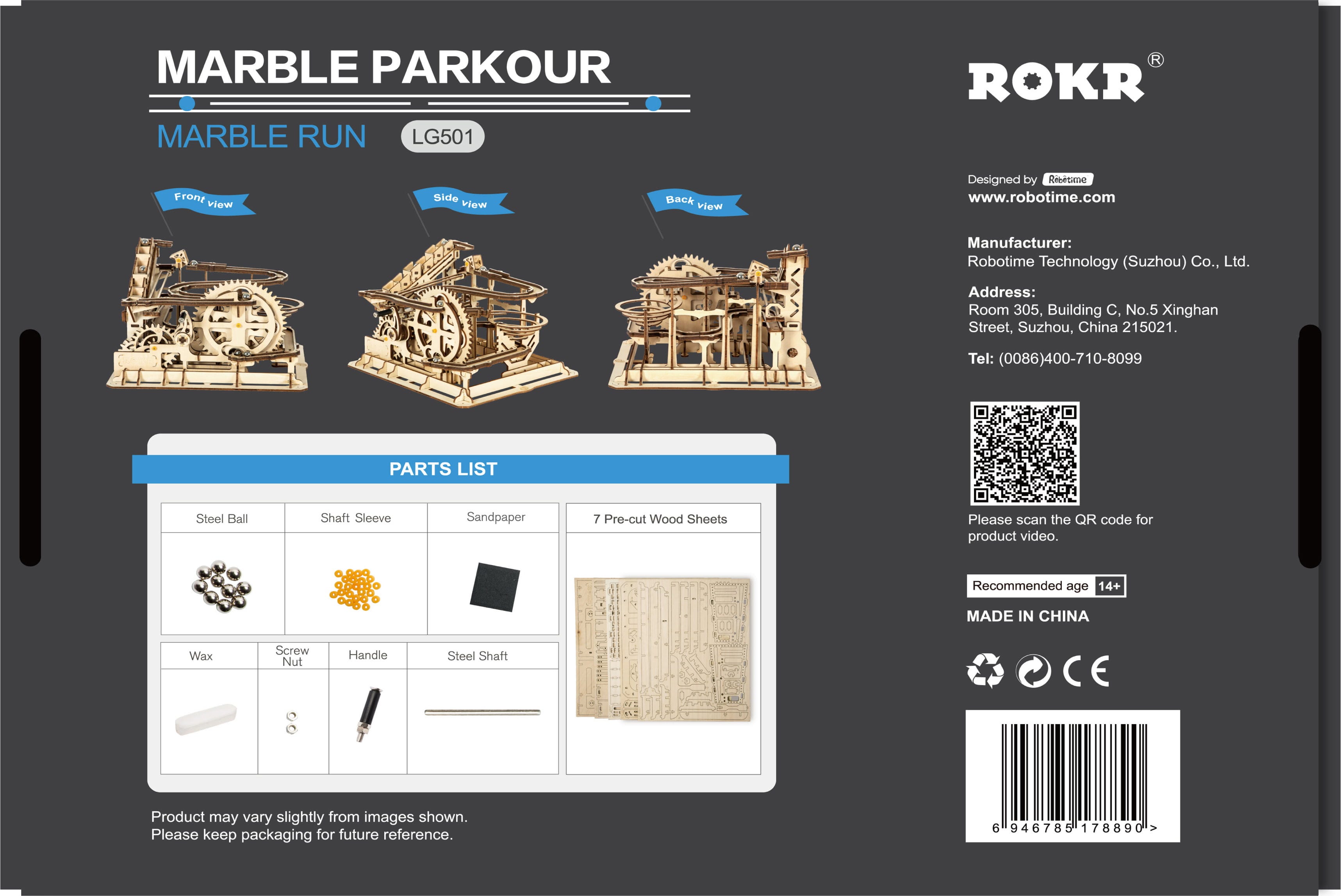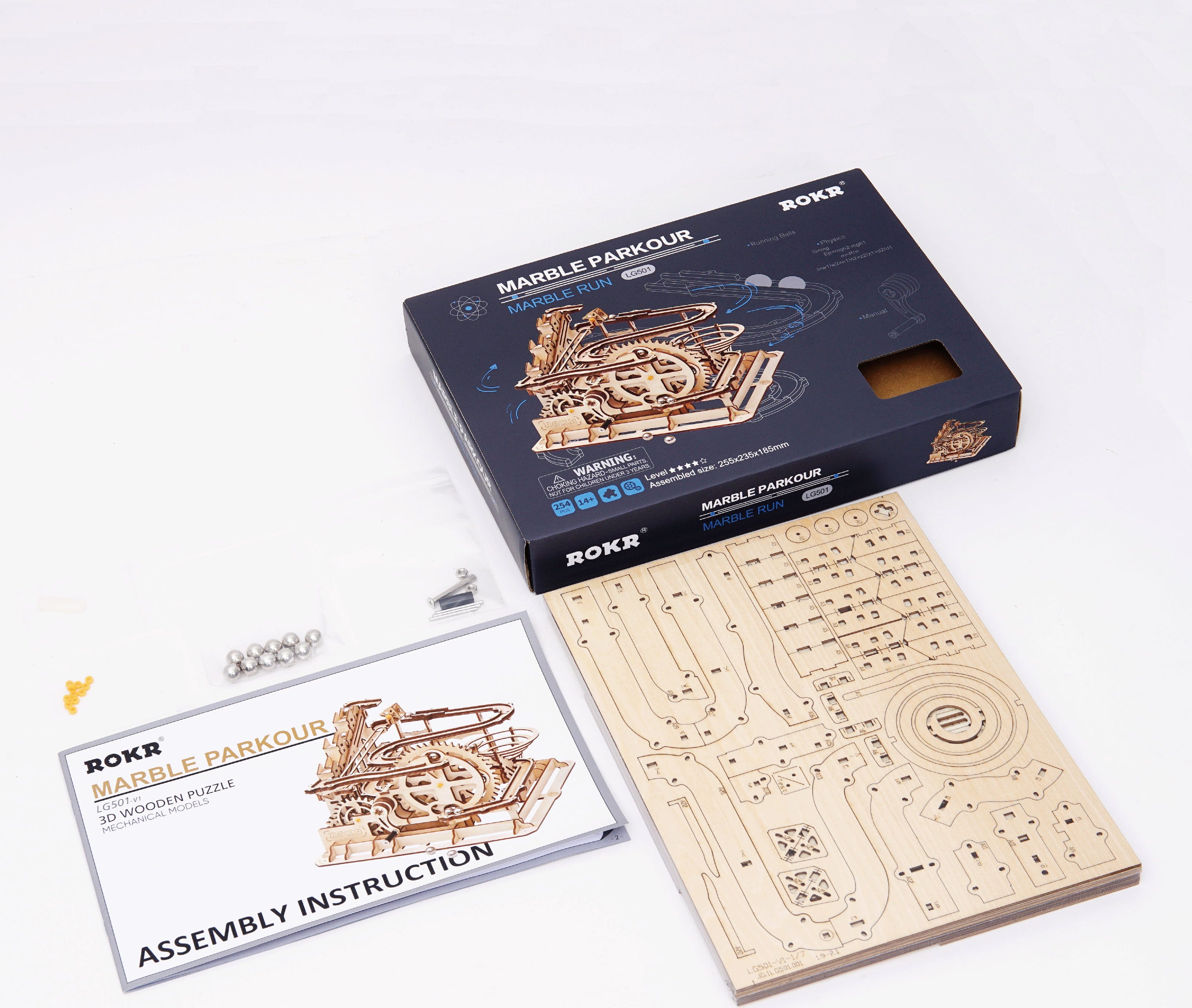 Pripravljeni na vzpone, ovinke in hitrost? ROKR Marble Parkour je mehanska 3D lesena sestavljanka, ki oživi spektakularen vlakec smrti, ki ga poganja vodno kolo. Z uporabo pravega lesa korak za korakom zgradite delujočo strukturo, kjer se kroglice dvignejo, pospešujejo in drsijo skozi spuste, ovinke in zanke.
