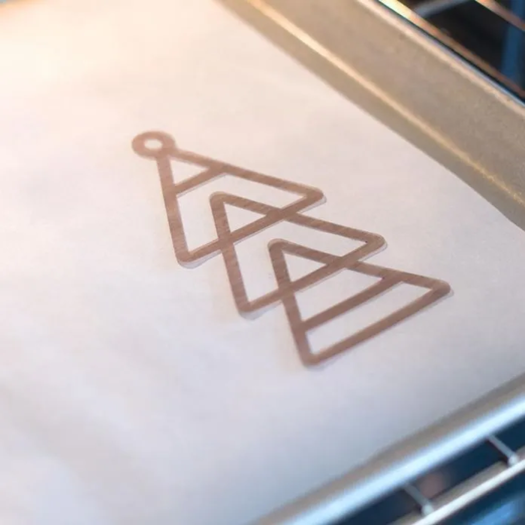 Površino lahko poslikate ali potiskate, zato lahko motive oblikujete povsem individualno. Po izrezovanju se dizajni segrejejo v pečici. Med peko se material občutno skrči ter hkrati postane debelejši in stabilnejši.