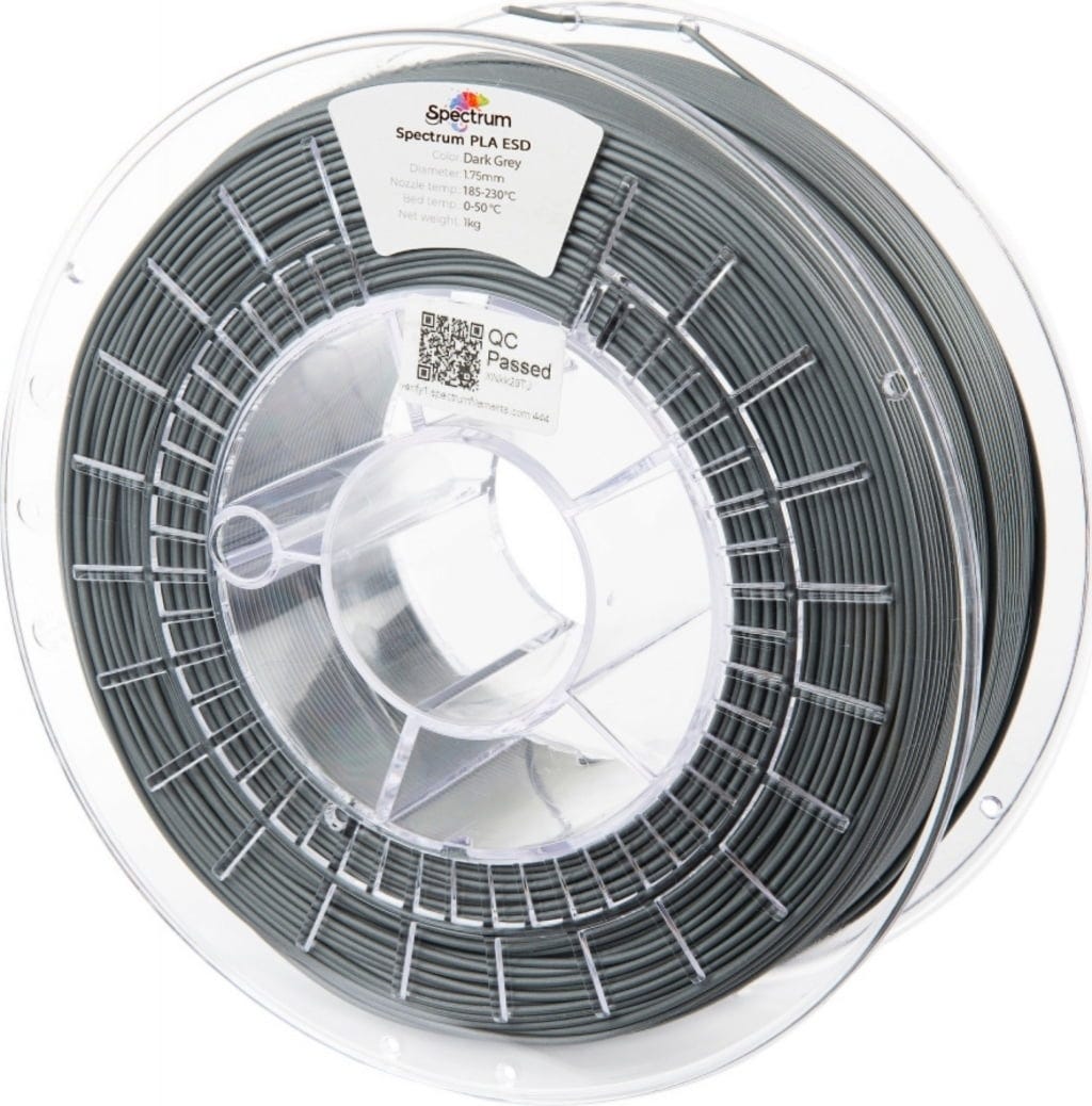 Spectrum PLA ESD je specializiran, antistatični PLA filament, razvit za uporabo, kjer so elektrostatična varnost, natančnost tiskanja in enostavnost uporabe najpomembnejši. Kot modificiran PLA biopolimer združuje enostavno obdelavo klasičnih PLA materialov s trajno ESD zaščito, zaradi česar je idealen za uporabo v občutljivih elektronskih okoljih in na območjih EX/ATEX, jer se je treba za vsako ceno izogniti iskrenju.