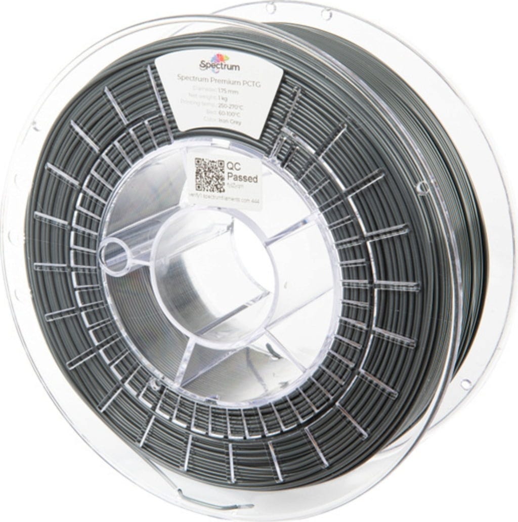 Premium PCTG znamke Spectrum je kopoliester, ki ima podobne lastnosti kot PET-G in je zato idealna alternativa. Filament odlikujejo visoka udarna trdnost, dimenzijska stabilnost in majhno krčenje ter lastnosti, kot so temperaturna odpornost do 76 °C, visoka elastičnost in izjemna kemijska odpornost.