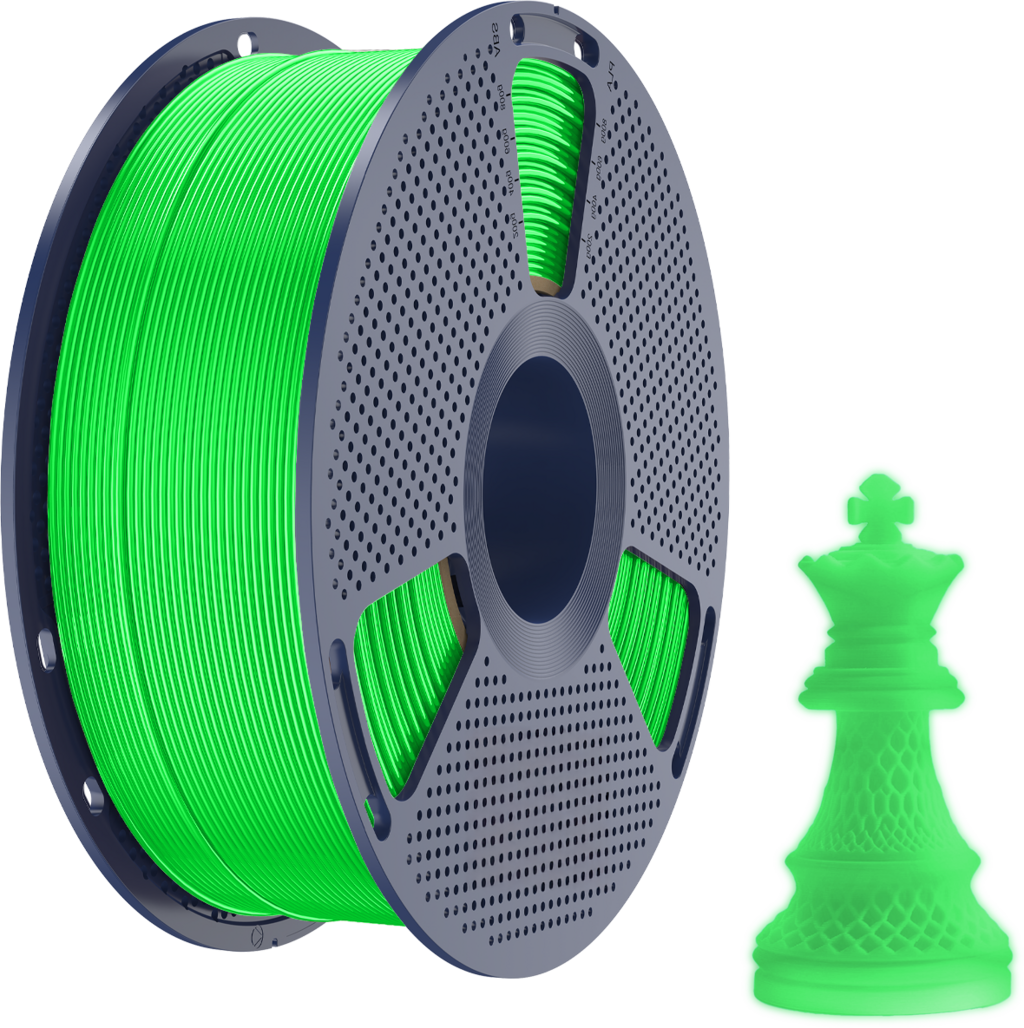 PLA Glow in the Dark znamke SUNLU je visokokakovosten PLA material s fosforescentnimi komponentami, ki se svetijo v temi, ko absorbirajo svetlobno. Biološko razgradljivi filament navdušuje z visoko trdnostko in togostjo ter majhnim krčenjem.