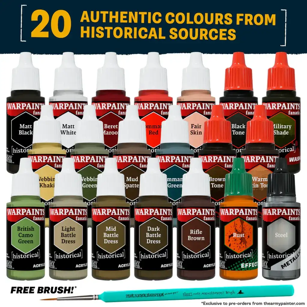 Paleta vam ponuja značilne tone rjave barve bojnih uniform, opremo v barvi kaki in svetle poudarke polkov – vse skrbno in zgodovinsko natančno. Zahvaljujoč popolni mešanici ekskluzivnih zgodovinskih tonov in preverjenih barv Warpaints Fanatic imate na dosegu roke vse, kar potrebujete za natančno delo!