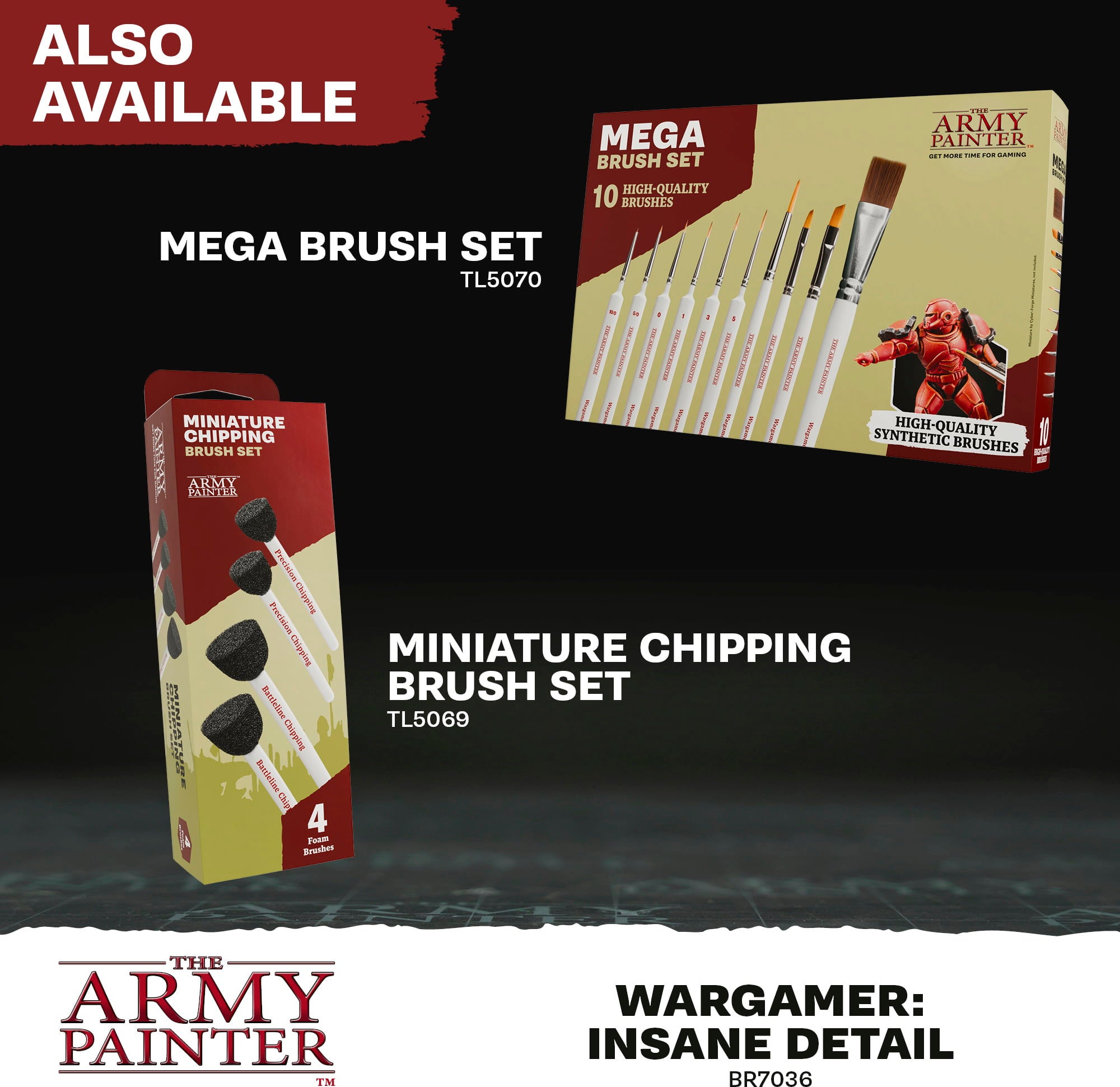 Wargamer Brushes znamke The Army Painter so čopiči, ki postavljajo nove standarde pri slikanju miniatur. Zahvaljujoč inovativni tehnologiji Bionic Bristle iz sintetičnih vlaken so ti čopiči posebej zasnovani za sodobne tehnike barvanja, kot sta hitro slikanje in nanašanje v enem sloju.