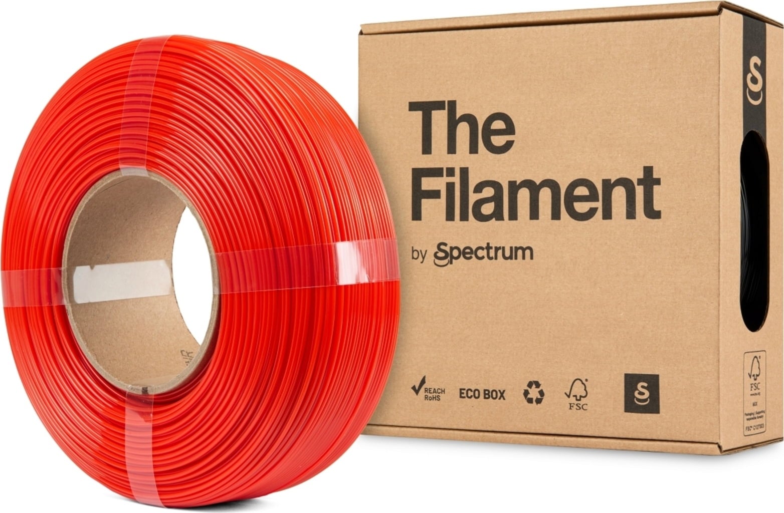 Ta ReFill je PETG filament brez tuljave, navit na kartonsko jedro. Združljiv je z tulci Bambu Lab za večkratno uporabo in natisnjenimi tulci Spectrum ReFill* ter ne potrebuje dodatnih adapterjev.